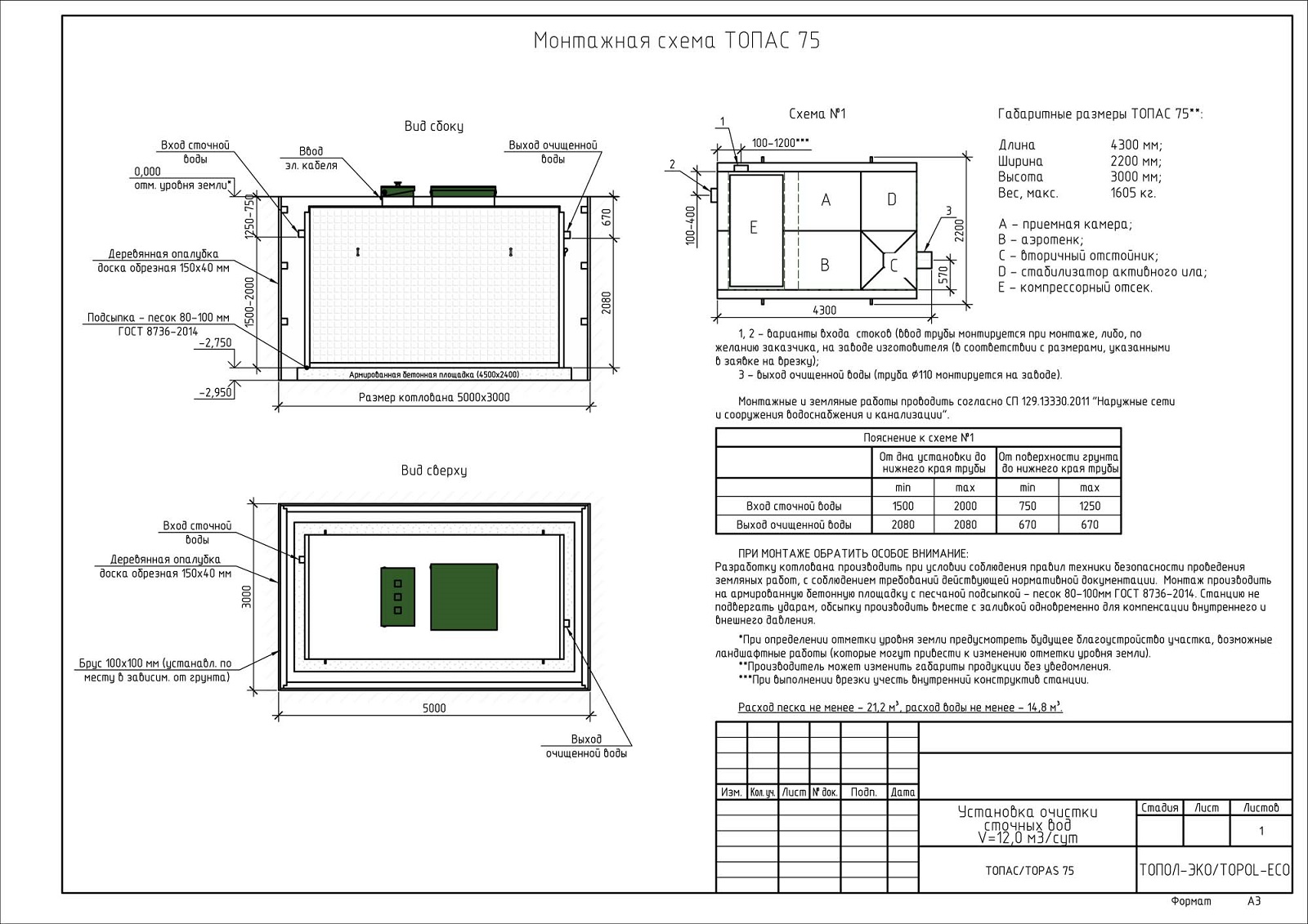 | Производительность | 12 м3/сут. |